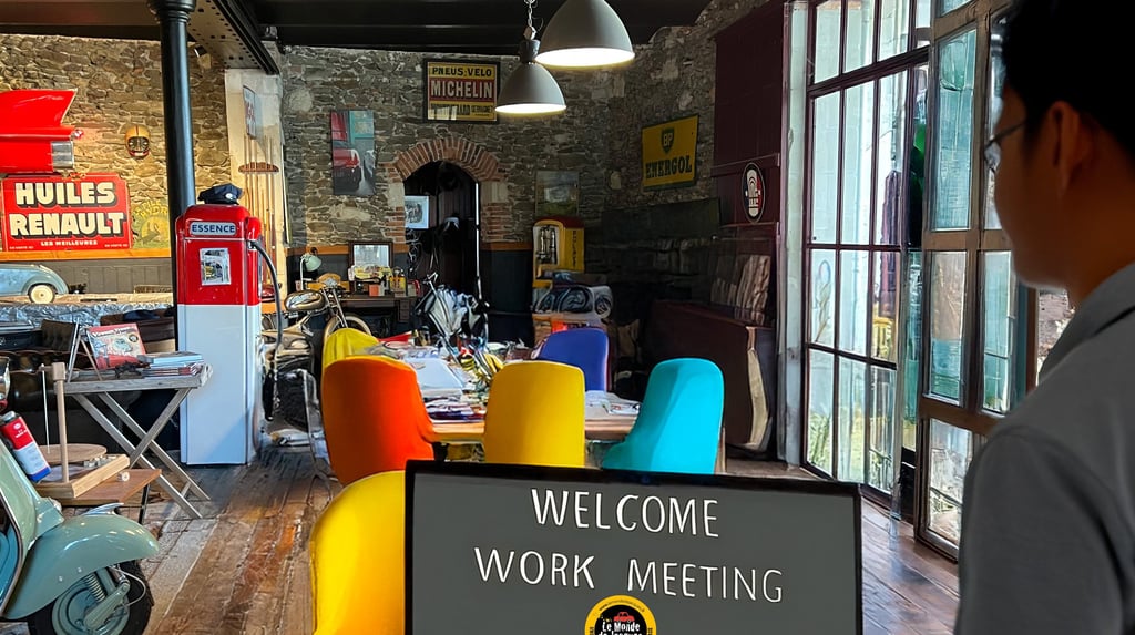 1 salle de réunion ambiance vintage pour la journée + 2 collations + 1 déjeuner. À partir de 139,50 € HT/pers